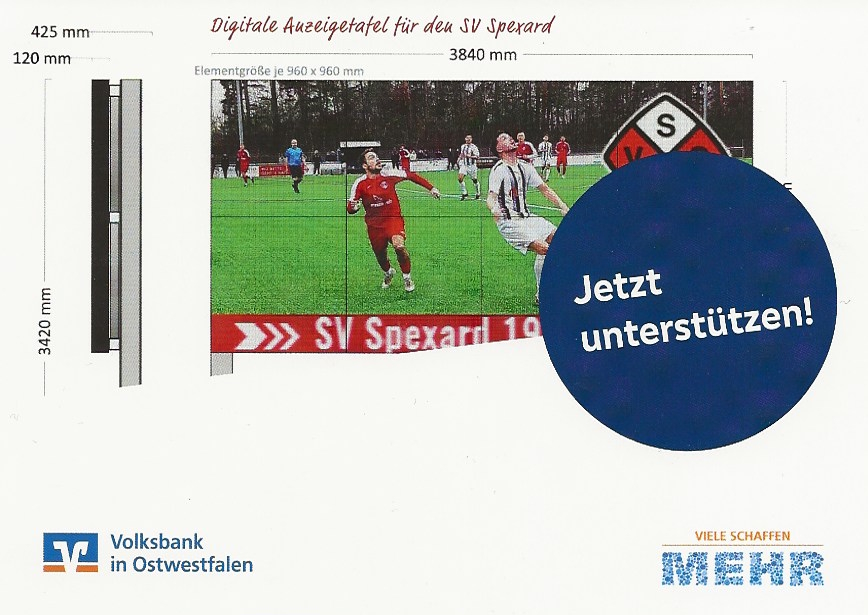 In diesem Projekt geht es um die Finanzierung einer digitalen Anzeigetafel auf dem Sportgelände des SV Spexard 1950 e.V. und verfolgen damit mehrere Ziele: